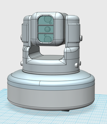 In both versions the front face of the camera housing was made more rounded, this makes the model slightly more functional as the IR LEDs of the camera were obscured by the previous design. Both models have begun to being split up into individual parts for 3d printing.