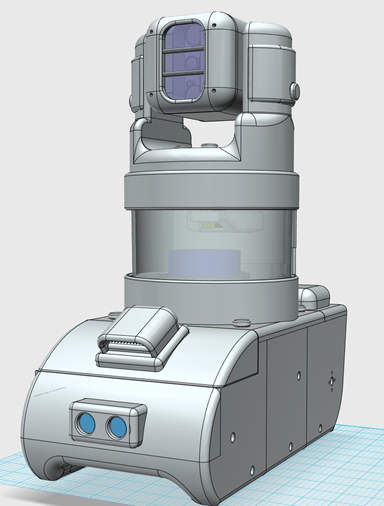 In week 6 both concept models were both developed to a more advanced level. The new model of both versions is shown below. both models have two pannels added to the side of the camera, these pannels allow for easier access to wires and cables.