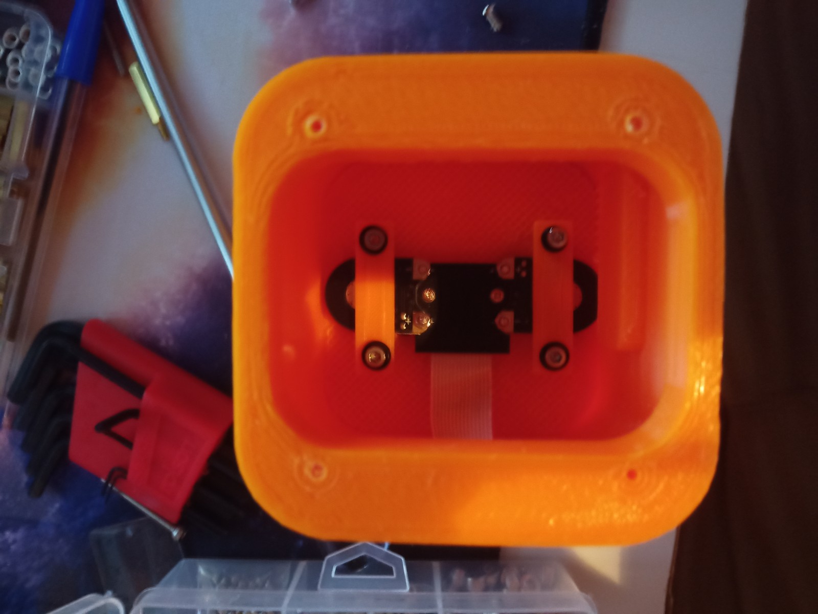 The all of the parts for the camera were printed off and are shown below assembled with its acrylic windows that was cut out of an acrylic sheet: