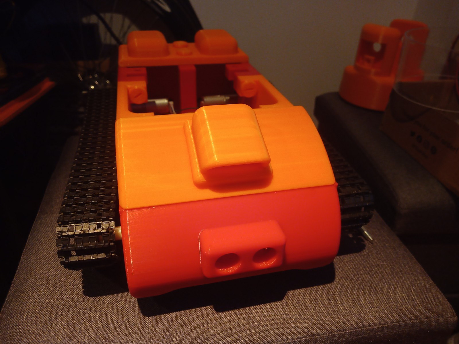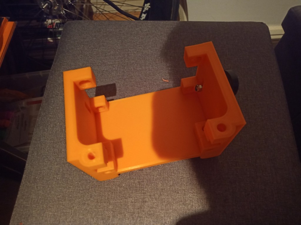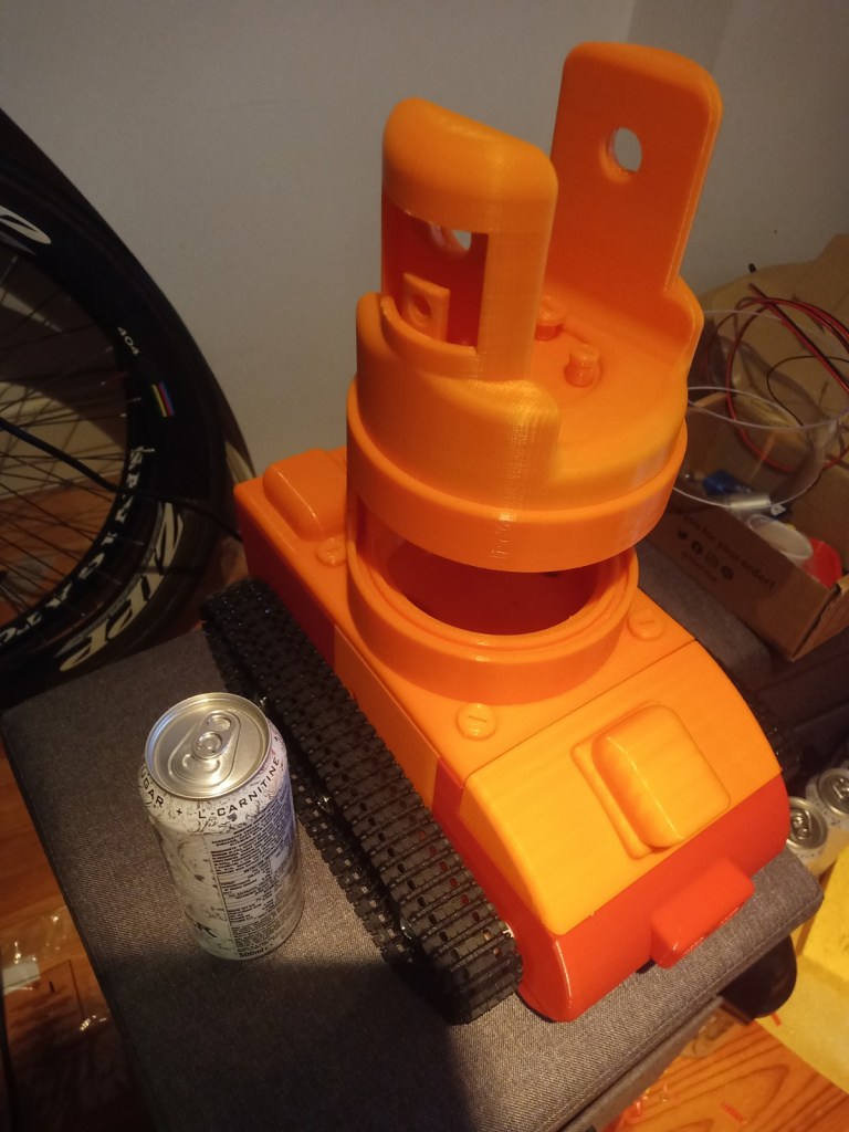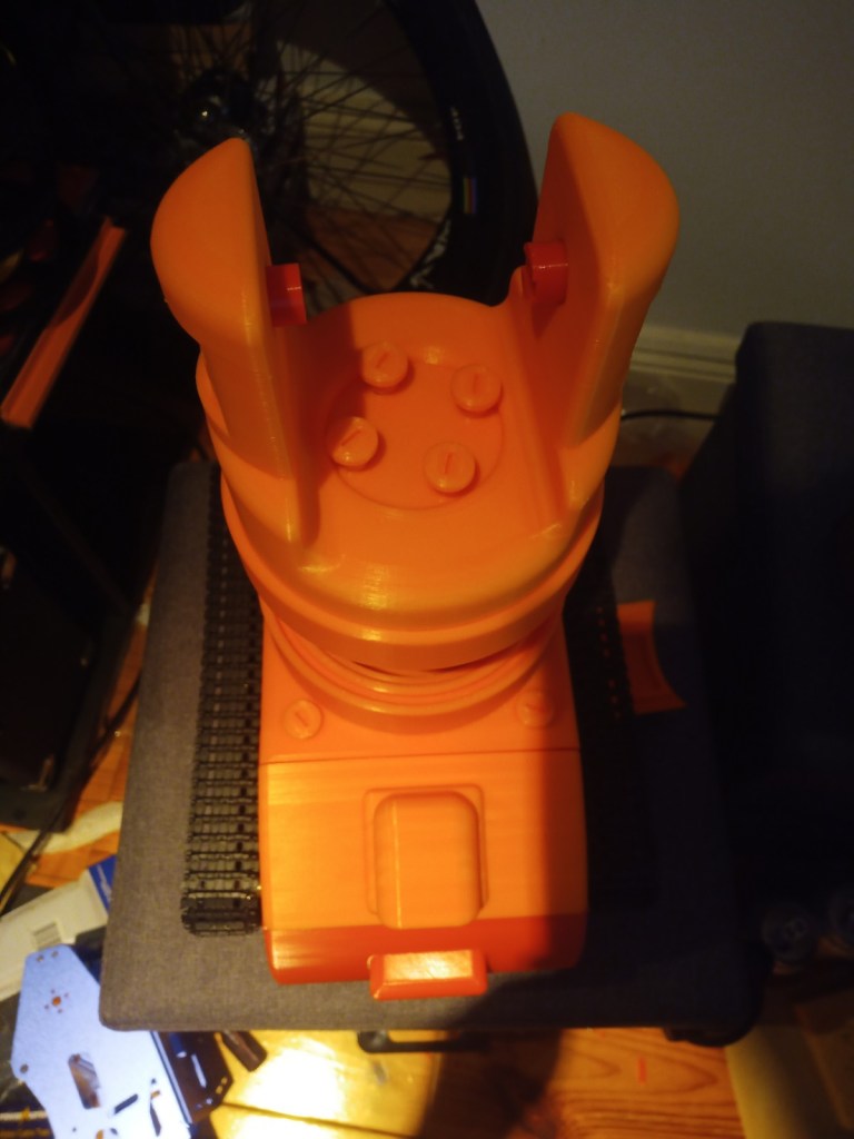Some more parts were printed and then reprinted after some mistakes were realised. On the front of the tracked chassis the area for the ultrasonic sensor was too small and the printer settings made the part quite fragile. The botom part where the wheel axils was rounded making it dificult to insert nuts into. this was the same for the middle part and the end part of the robot frame.
