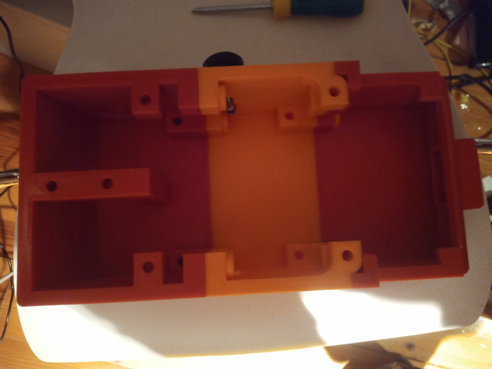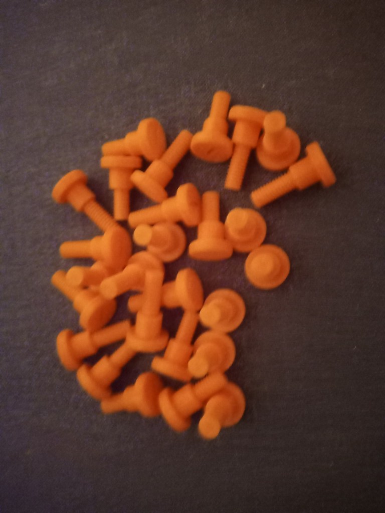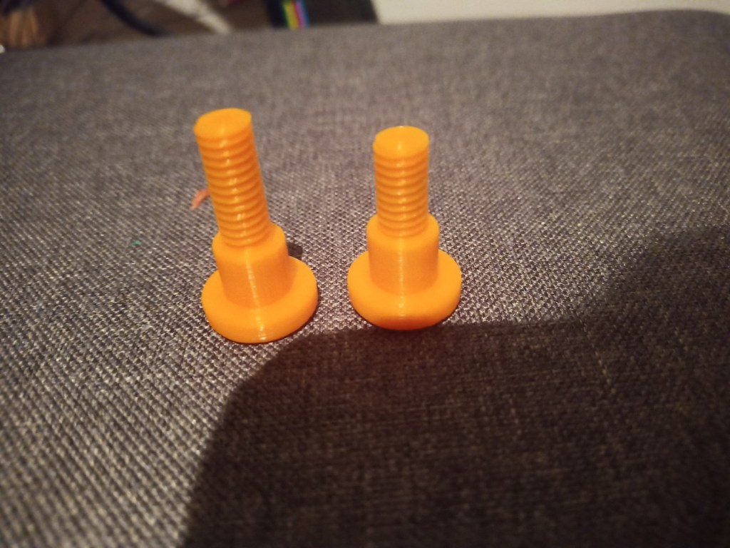 Printing screws to check tolerances and different part changes and optimisations. More printing parts. The proper part tolerance were achieved for the most part: