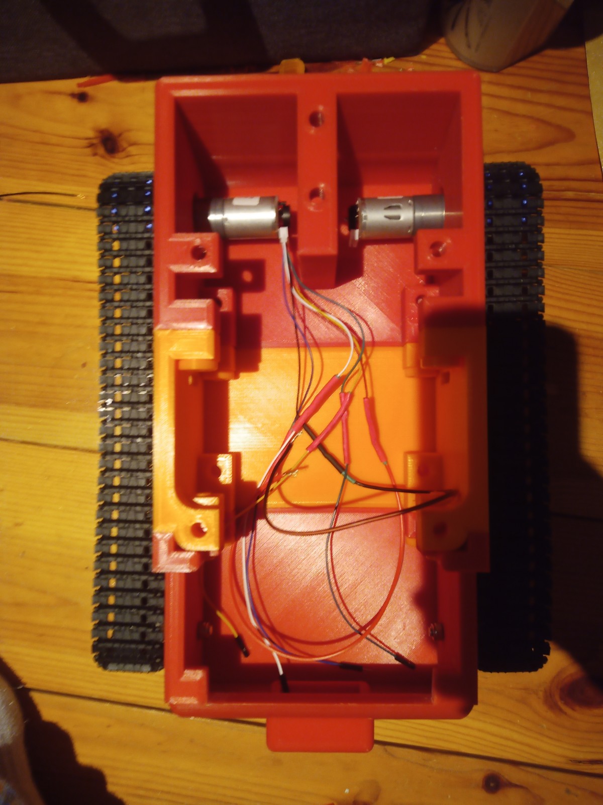 The chasis was assembled using the 3d printed screws and the motors were installed.